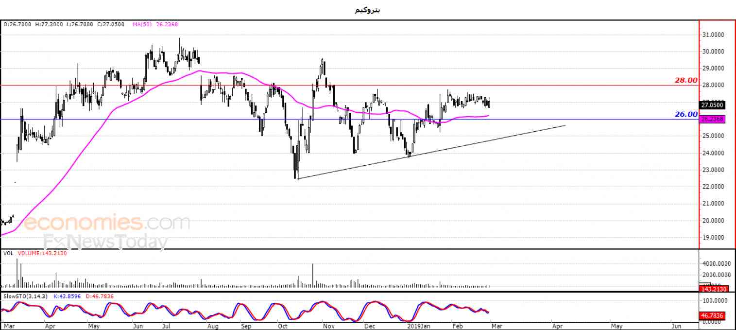 نطاق التداول المتوقع لهذا اليوم ما بين مستوى الدعم 26.00 ومستوى المقاومة 28.00 .