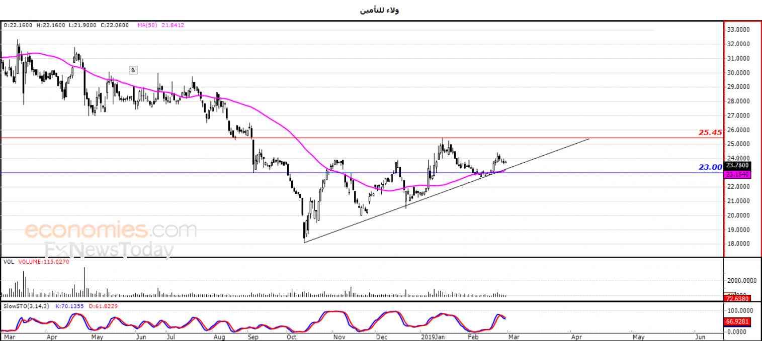 ولذلك تشير توقعاتنا إلى المزيد من الارتفاع التصحيحي للسهم خلال تداولاته القادمة ، طيلة ثبات الدعم 23.00 ، ليستهدف مستوى المقاومة 25.45 .