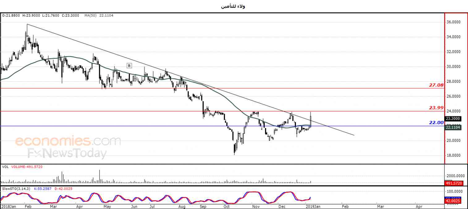 ولاء للتأمين يخترق خط اتجاه رئيسي هابط – تحليل صباحي – 08-01-2019