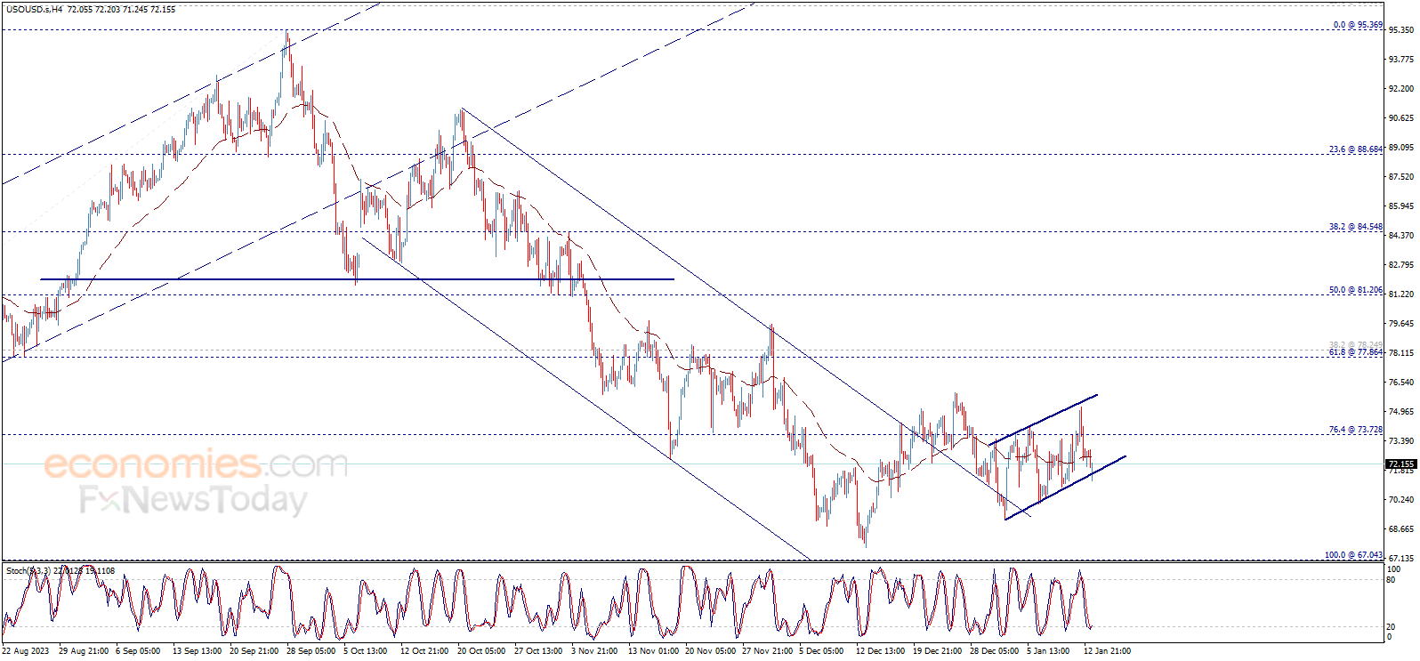 يظهر سعر النفط ميلاً هابطاً ليختبر دعم القناة الفرعية الصاعدة التي تظهر بالصورة، بانتظار كسر هذا الدعم عند 71.65 للحصول على حافز سلبي قوي يساهم بدفع السعر لتحقيق هدفنا الأول المتوقع عند 70.00، ليبقى سيناريو الاتجاه الهابط قائماً وفعالاً ما لم يتم اختراق مستوى 73.73 والثبات فوقه.