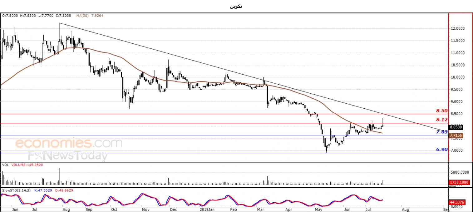 نطاق التداول المتوقع لهذا اليوم ما بين مستوى الدعم 7.63 ومستوى المقاومة 8.50 .