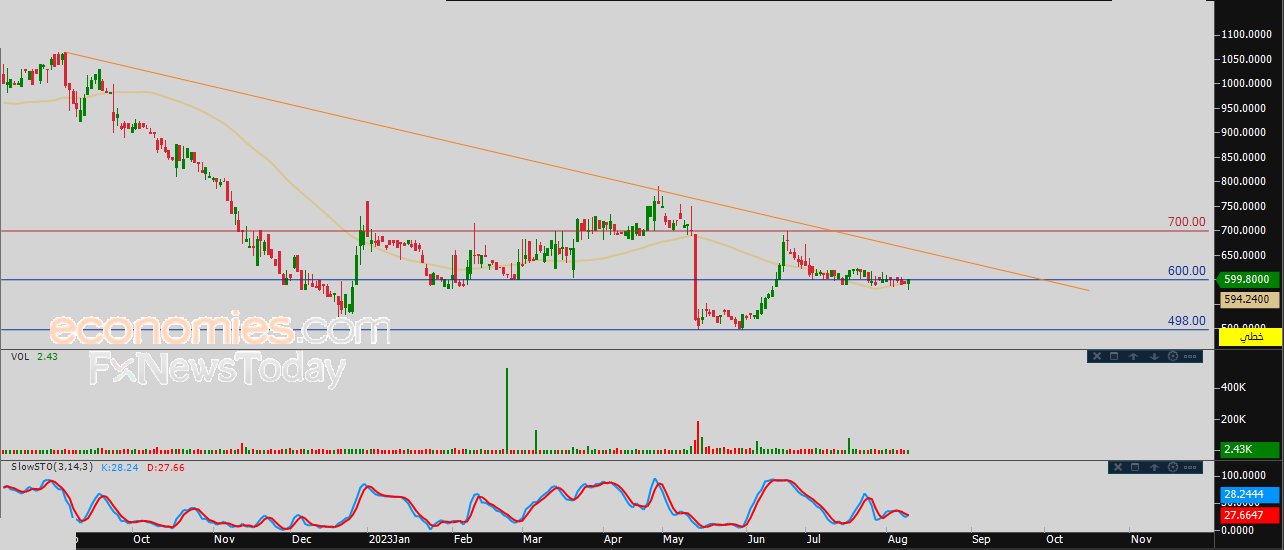 لهذا نحن نرجح عودة انخفاض السهم خلال تداولاته القادمة، خاصة في حالة كسره للدعم 600.00، ليستهدف بعدها مستوى الدعم المحوري 498.00.