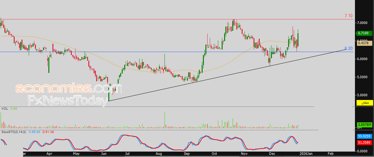 لذلك فتوقعاتنا تشير إلى صعود سعر السهم خلال تداولاته القادمة، طيلة ثبات مستوى الدعم 6.20 ريال، ليستهدف مستوى المقاومة المحوري 7.10 ريال.