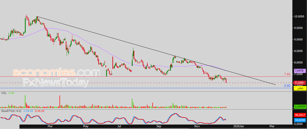 لهذا تشير توقعاتنا إلى هبوط سعر السهم خلال تداولاته القادمة، طيلة استقراره دون مستوى المقاومة 7.40 ريال، ليستهدف مستوى الدعم 6.90 ريال.