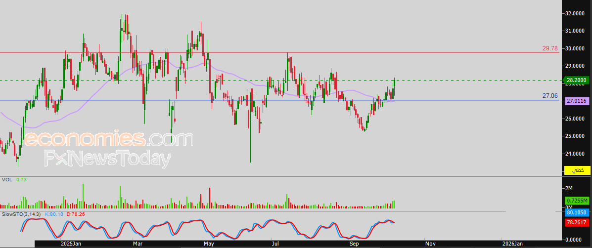 لذلك فتوقعاتنا تشير إلى صعود سعر السهم خلال تداولاته القادمة، بشرط ثبات مستوى الدعم 27.06 ريال، ليستهدف مستوى المقاومة 29.78 ريال.
