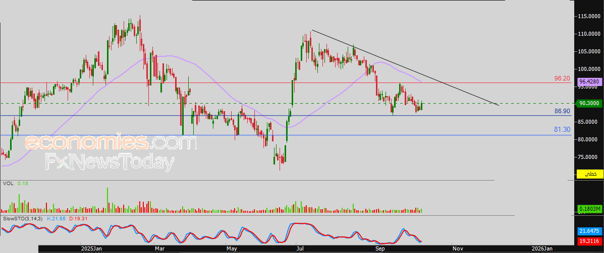 لهذا تشير توقعاتنا إلى انخفاض سعر السهم خلال تداولاته القادمة، خاصة في حالة كسره للدعم المذكور 86.90 ريال، ليستهدف دعمه التالي عند سعر 81.30 ريال.