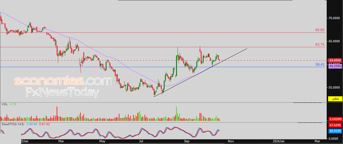 لهذا تشير توقعاتنا إلى صعود سعر السهم بتداولاته القادمة، بشرط ثبات مستوى الدعم 59.45 ريال، ليستهدف مستوى المقاومة المحوري والعنيد 63.75 ريال.