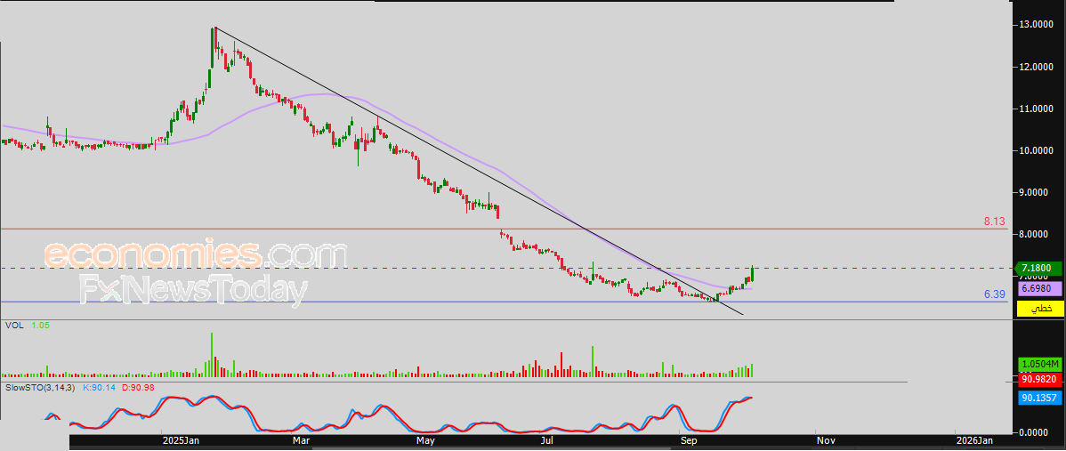 لهذا تشير توقعاتنا إلى المزيد من الصعود لسعر السهم خلال تداولاته القادمة، طيلة ثبات مستوى الدعم 6.39 ريال، ليستهدف مستوى المقاومة 8.13 ريال.