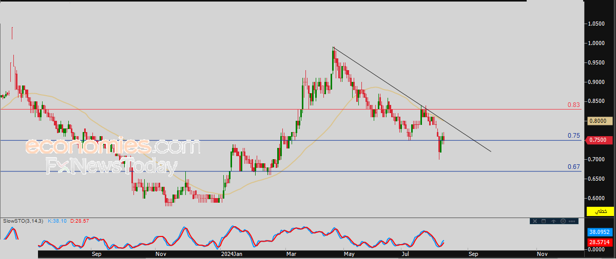 لهذا نحن نتوقع المزيد من الهبوط لسعر السهم خلال تداولاته القادمة، خاصة في حالة عودة استقراره دون مستوى الدعم 0.75، ليستهدف بعدها أولى مستويات الدعم عند سعر 0.67 ريال.