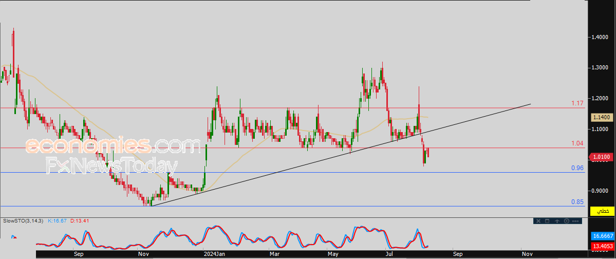 لهذا نحن نتوقع المزيد من الهبوط لسعر السهم خلال تداولاته القادمة، خاصة طيلة استقراره دون مستوى المقاومة 1.04، ليستهدف أولى مستويات الدعم عند سعر 0.96 رسال.
