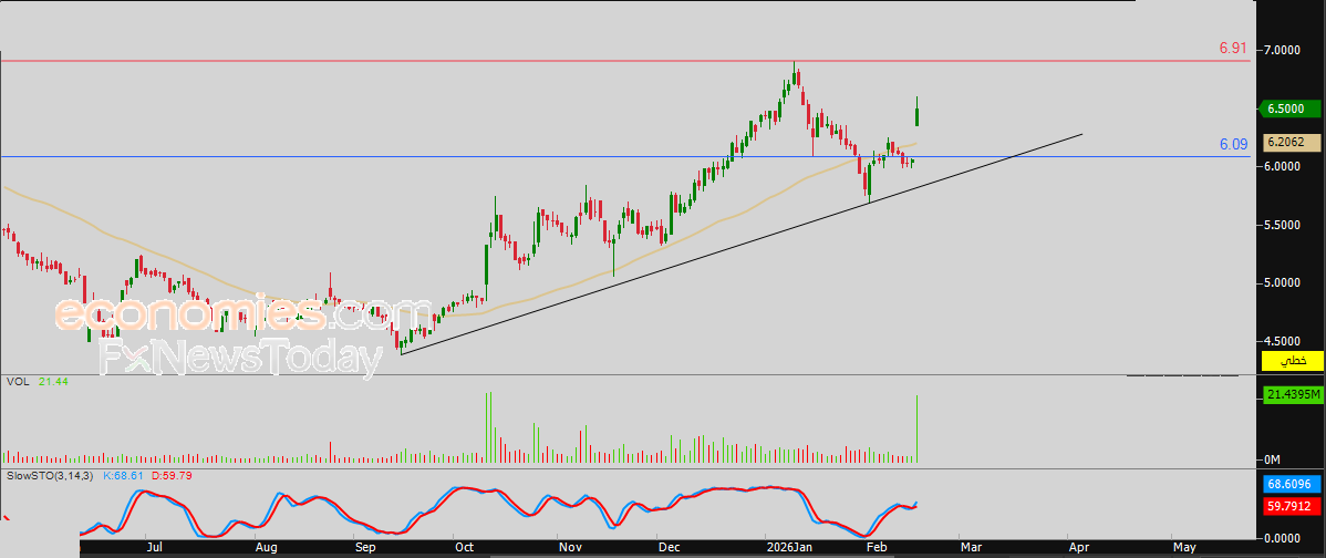 لهذا تشير توقعاتنا إلى صعود سعر السهم خلال تداولاته القادمة، طيلة ثبات مستوى الدعم 6.09 ريال، ليستهدف مستوى المقاومة المحوري 6.91 ريال.