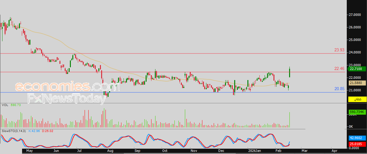 لذلك فتوقعاتنا تشير إلى صعود سعر السهم خلال تداولاته القادمة، خاصة طيلة استقراره اعلى سعر 22.46 ريال، ليستهدف مقاومته التالية عند سعر 23.93 ريال.