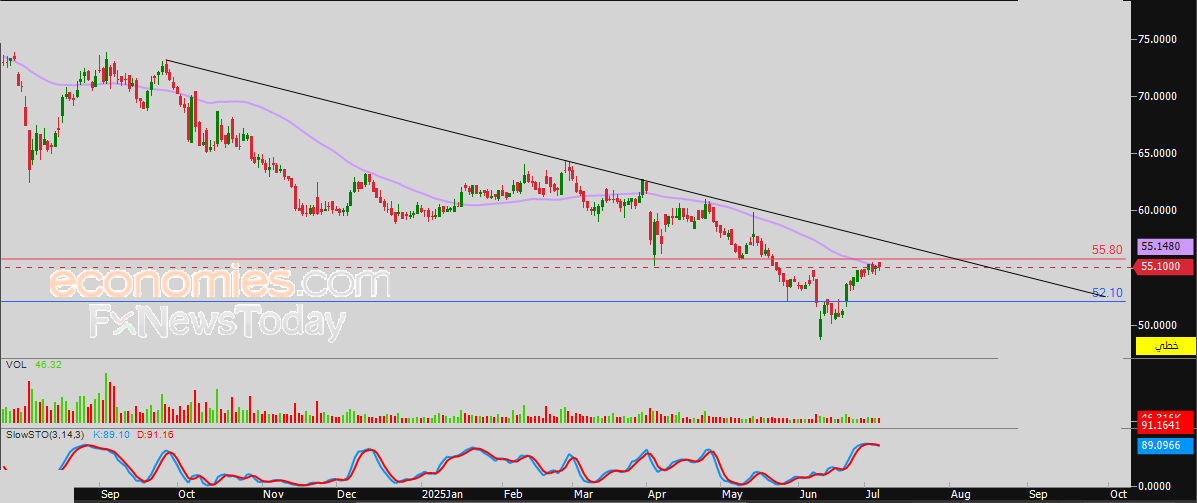 لهذا تشير توقعاتنا إلى هبوط سعر السهم خلال تداولاته القادمة، طيلة ثبات المقاومة 55.80 ريال، ليستهدف مستوى الدعم 52.10 ريال.