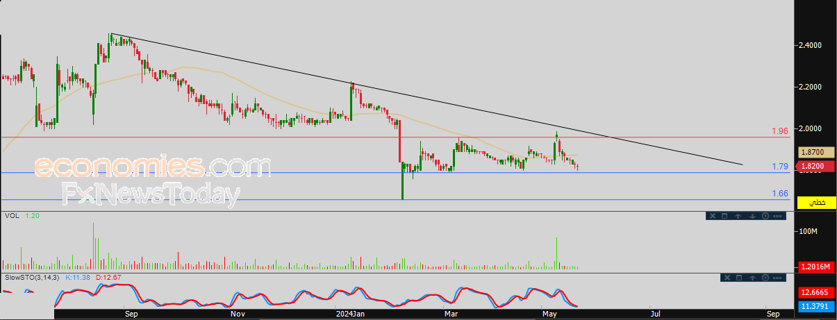 لهذا تشير توقعاتنا إلى المزيد من الانخفاض لسعر السهم خلال تداولاته القادمة، خاصة في حالة كسره لمستوى الدعم 1.79، ليستهدف بعدها مستوى الدعم المحوري 1.66.