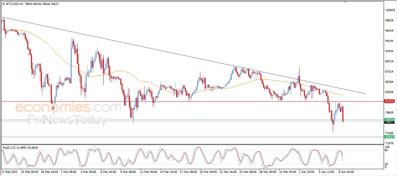 تعرض سعر البتكوين (BTCUSD) للسقوط الحر بتداولاته اللحظية الأخيرة، ليتخطى مستوى الدعم المحوري 77,000$ ليضاعف من احتمالية كسره، وذلك على اثر ثبات مستوى المقاومة المهم 81,000$، ما عرضه للضغط السلبي خاصة مع بدء توارد الإشارات السلبية بمؤشرات القوة النسبية، بعد وصولها لمناطق شديدة التشبع بعمليات الشراء.