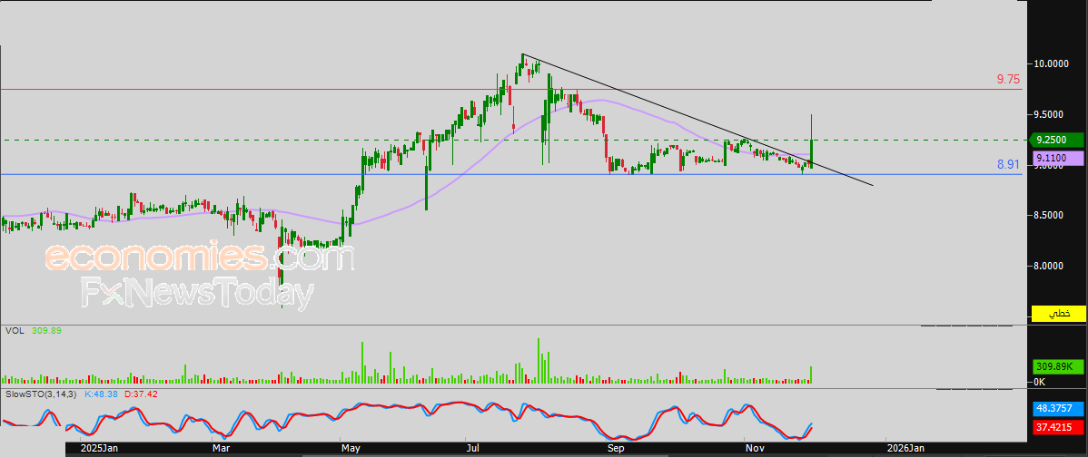 لذلك فتوقعاتنا تشير إلى صعود سعر السهم خلال تداولاته القادمة، طيلة ثبات مستوى الدعم 8.90 ريال، ليستهدف أولى مستويات المقاومة عند سعر 9.75 ريال.