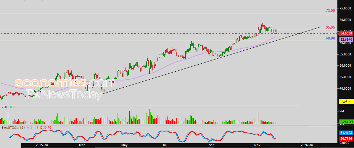 لهذا تشير توقعاتنا إلى صعود سعر السهم خلال تداولاته القادمة، خاصة في حالة اختراقه للمقاومة المذكورة 65.65 ريال، ليستهدف بعدها مستوى المقاومة التالي له عند سعر 73.00 ريال.