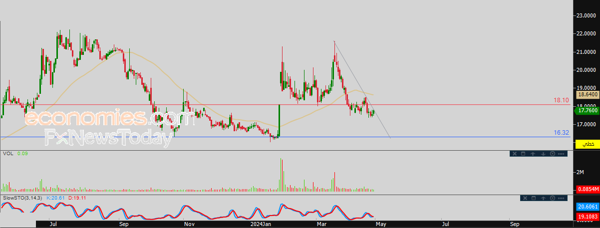 لهذا تشير توقعاتنا إلى ترجيح سيناريو عودة هبوط سعر السهم خلال تداولاته القادمة، طيلة استقراره دون مستوى المقاومة 18.10، ليستهدف مستوى الدعم المحوري 16.32.