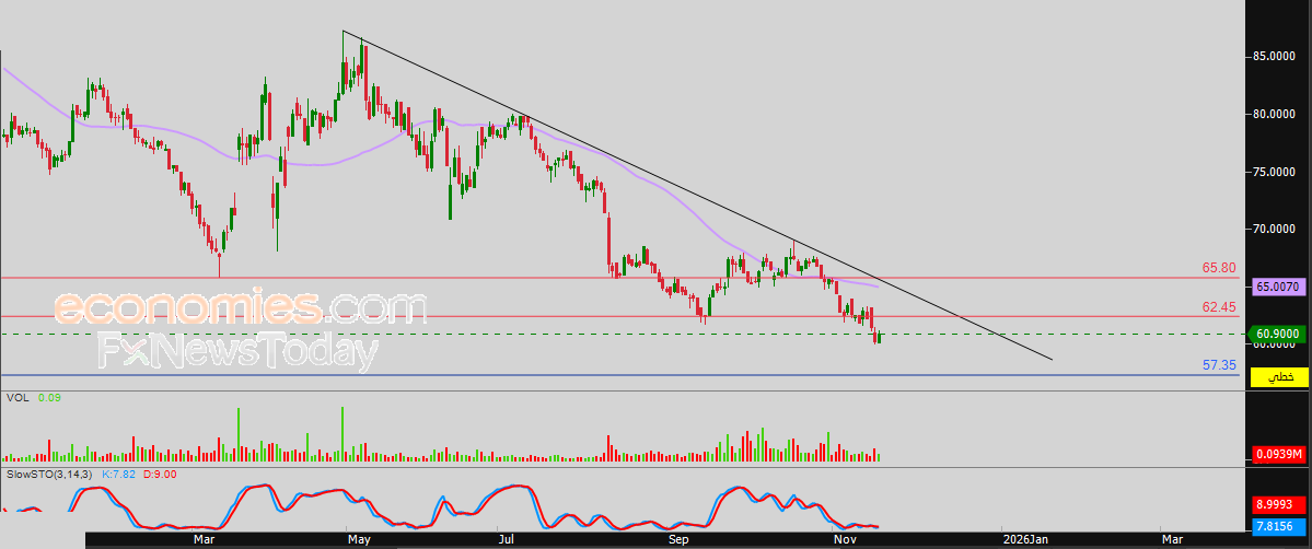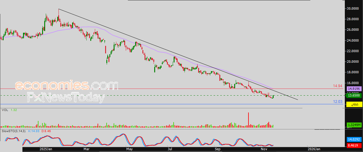 مع ذلك لا يزال السهم يواجه ضغطاً سلبياً نتيجة استمراره في التداول أسفل متوسطه المتحرك البسيط لفترة 50 يوماً، إضافة إلى استمرار سيطرة الاتجاه الهابط على حركة السهم وتداولاته بمحاذاة خط ميل رئيسي، ما يجعل أي محاولات صعود حالياً أقرب إلى ارتداد تصحيحي محدود ما لم يخترق مستويات مقاومة محورية.