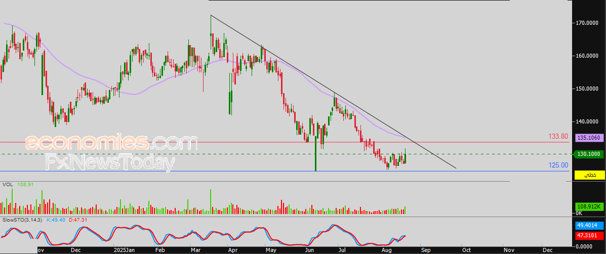 لذلك تشير توقعاتنا إلى انخفاض سعر السهم خلال تداولاته القادمة، طيلة استقراره دون سعر 133.80 ريال، ليستهدف مستوى الدعم المذكور 125.00 ريال.
