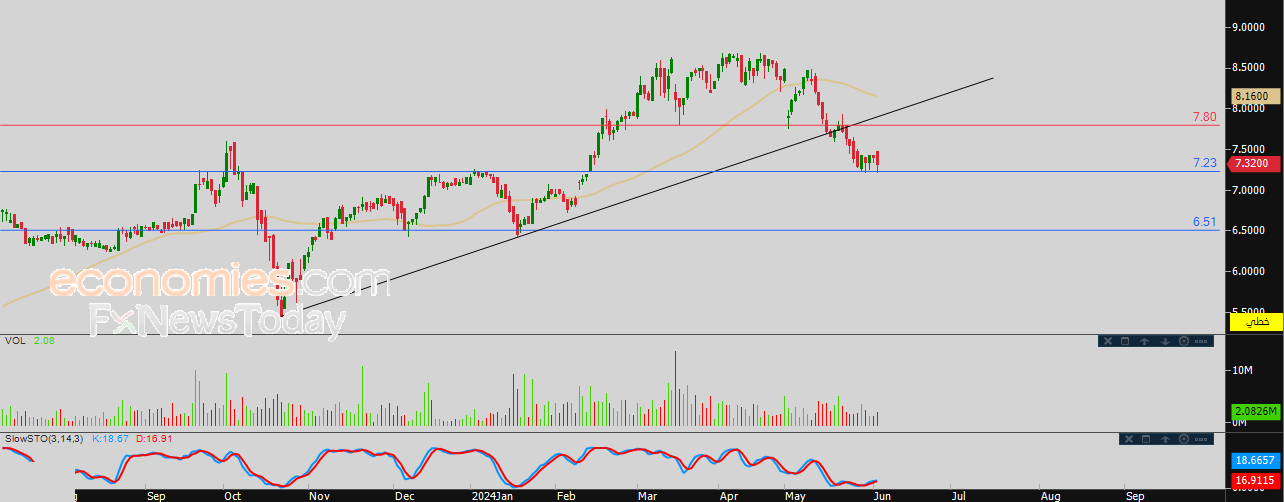 لهذا تشير توقعاتنا إلى المزيد من الهبوط لسعر السهم خلال تداولاته القادمة، خاصة في حالة كسره لمستوى الدعم 7.23، ليستهدف بعدها مستوى الدعم 6.50.