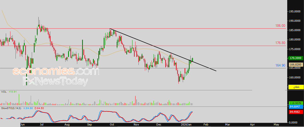 لهذا تشير توقعاتنا إلى صعود سعر السهم خلال تداولاته القادمة، طيلة ثبات مستوى الدعم 164.90 ريال، ليستهدف أولى مستويات المقاومة عند سعر 176.80 ريال.