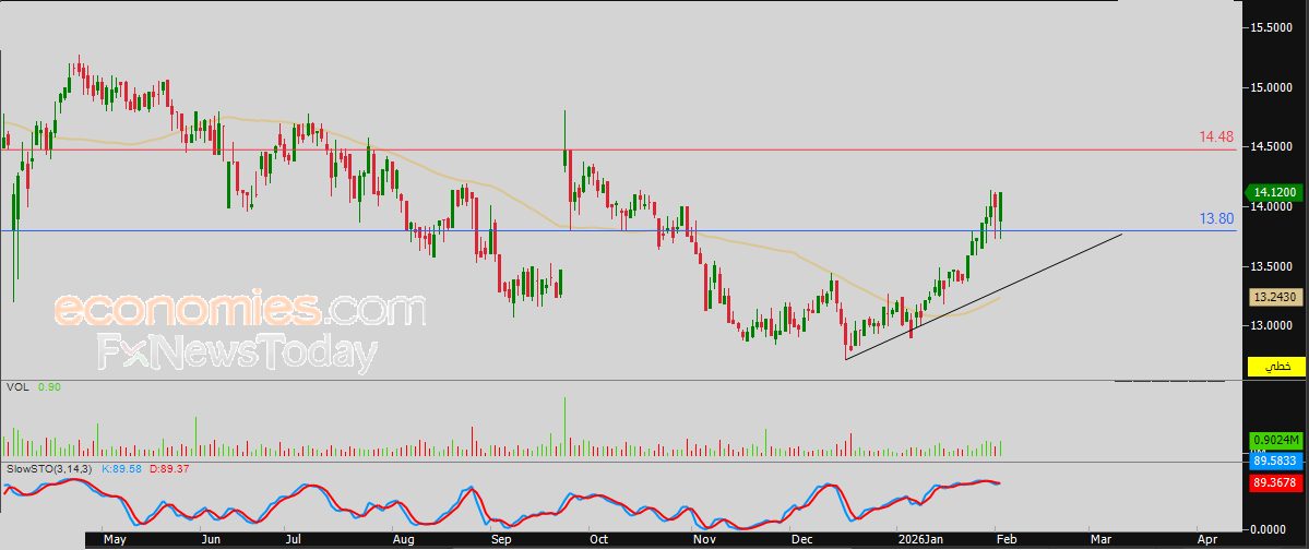 لهذا فتوقعاتنا تشير إلى صعود سعر السهم خلال تداولاته القادمة، خاصة طيلة استقراره اعلى الدعم 13.80 ريال، ليستهدف مستوى المقاومة المحوري 14.48 ريال.