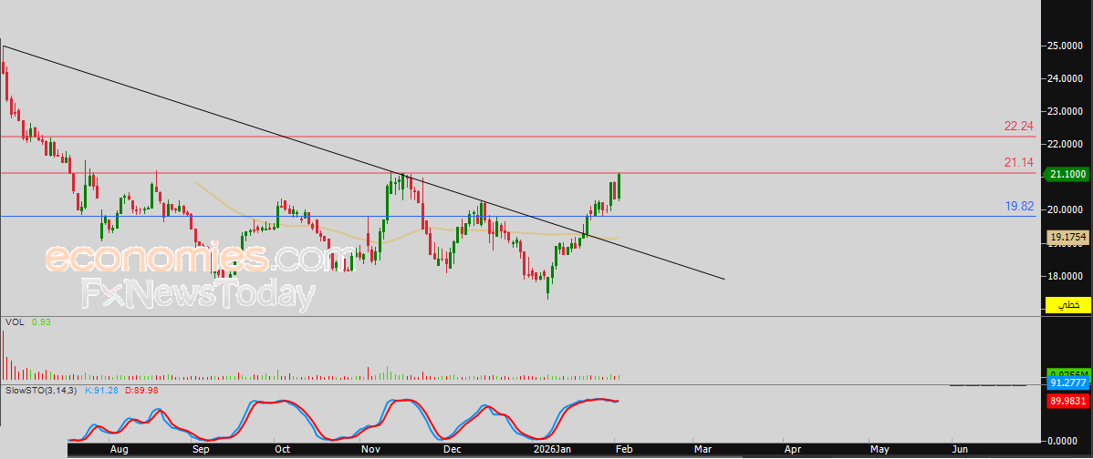 لهذا تشير توقعاتنا إلى صعود سعر السهم خلال تداولاته القادمة، خاصة في حالة اختراقه للمقاومة المذكورة 21.10 ريال، ليستهدف بعدها مقاومته التالية عند سعر 22.25 ريال.