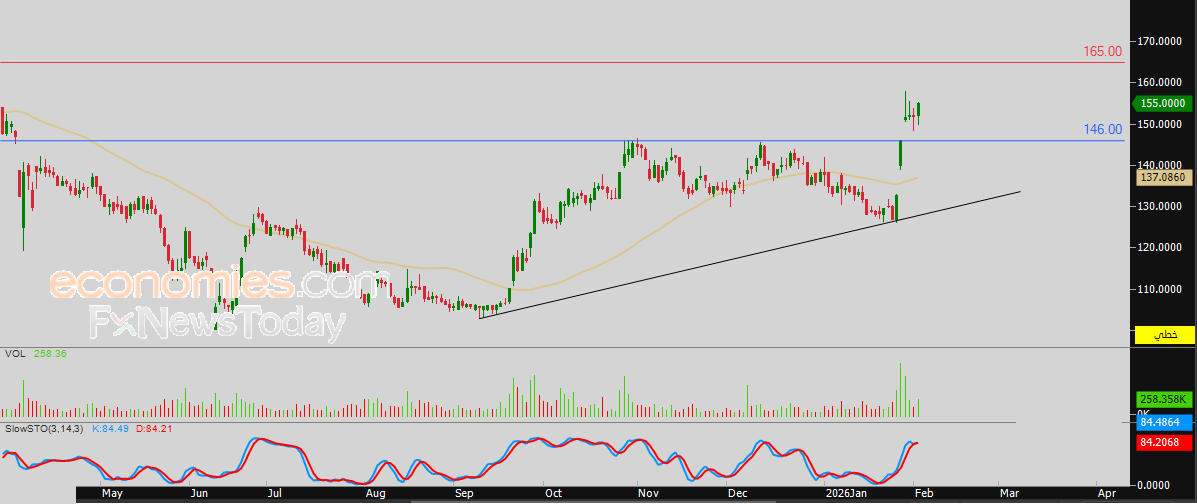 لذلك فتوقعاتنا تشير إلى صعود سعر السهم خلال تداولاته القادمة، خاصة طيلة استقراره اعلى الدعم المحوري 146.0 ريال، ليستهدف مستوى المقاومة 165.00 ريال.