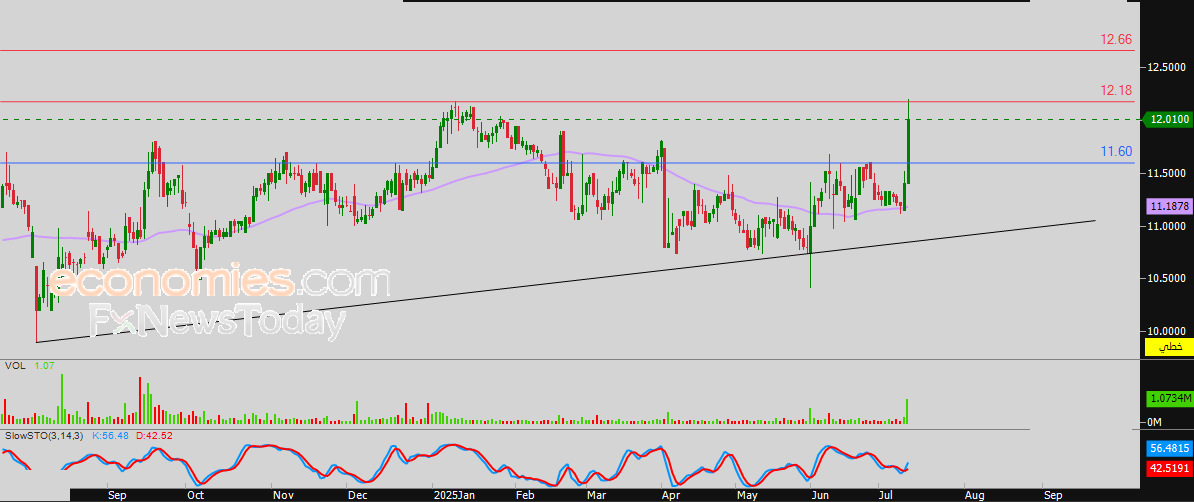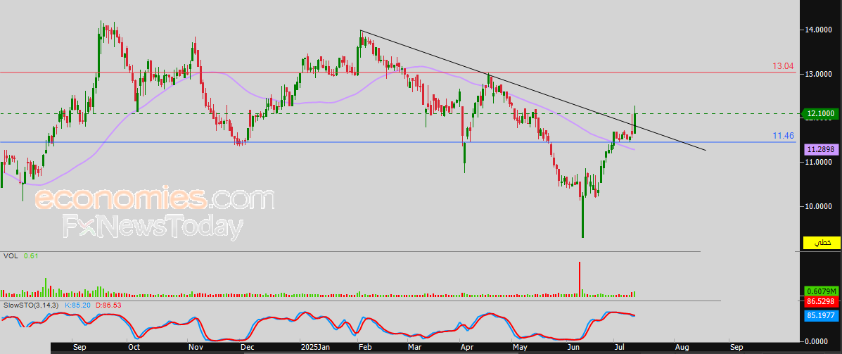 وعلى هذا الأساس فتوقعاتنا تشير إلى ارتفاع سعر السهم خلال تداولاته القادمة، بشرط ثبات مستوى الدعم 11.06 ريال، ليستهدف مستوى المقاومة المهم 11.60 ريال.