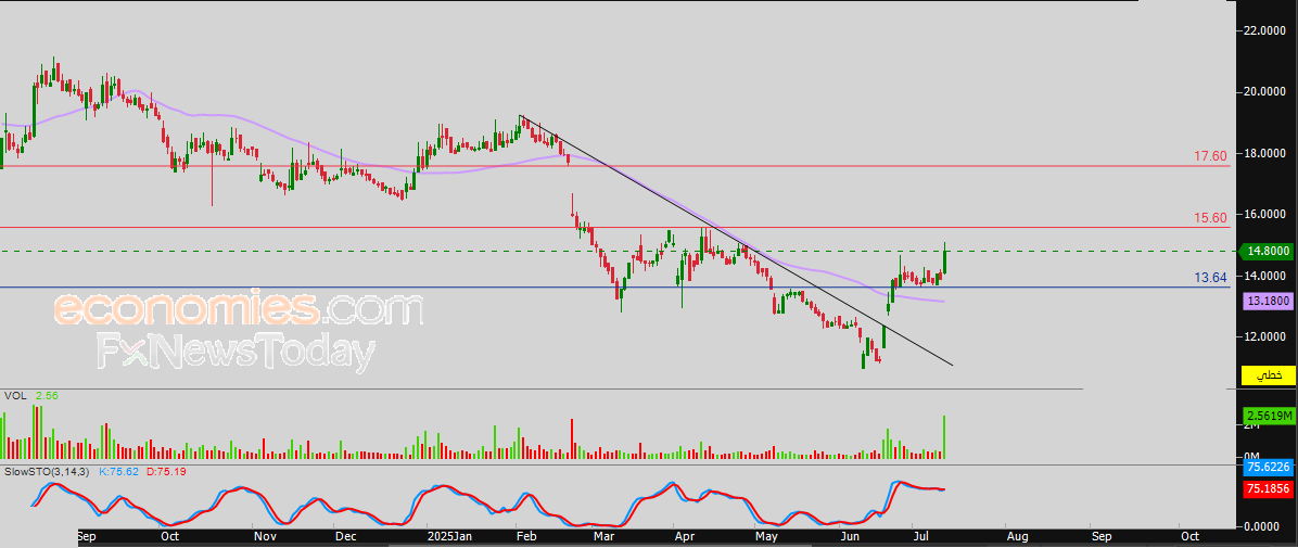 • هدف السهم القادم يستهدف مستويات المقاومة عند 15.60 و 17.60 ريال