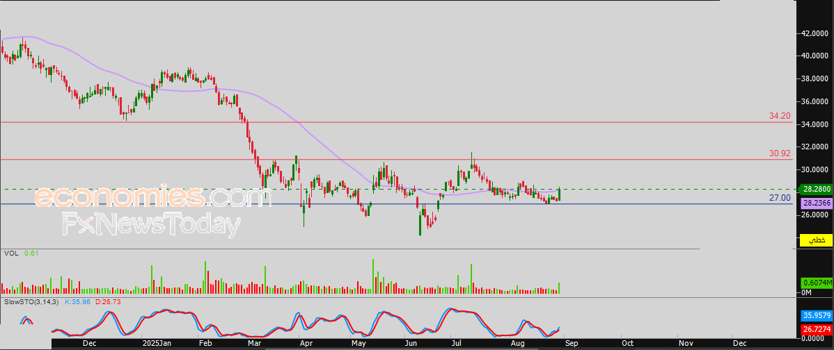 لهذا تشير توقعاتنا إلى ارتفاع سعر السهم خلال تداولاته القادمة، بشرط ثبات مستوى الدعم 27.00 ريال، ليستهدف مستوى المقاومة المحوري 30.92 ريال.