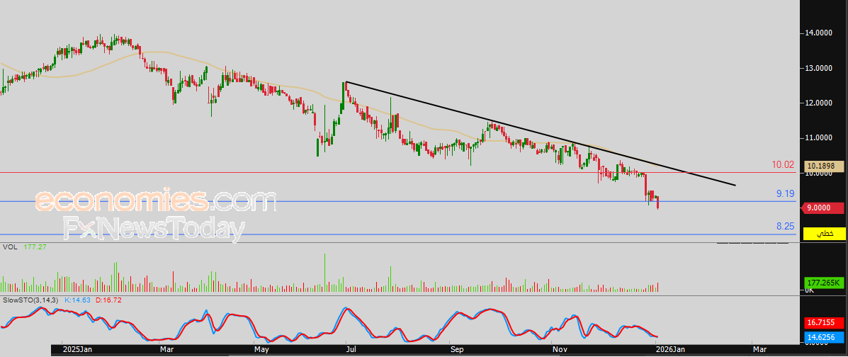 لذلك فتوقعاتنا تشير إلى انخفاض سعر السهم خلال تداولاته القادمة، خاصة طيلة استقراره دون سعر 9.19 ريال، ليستهدف مستوى الدعم التالي له عند سعر 8.25 ريال.