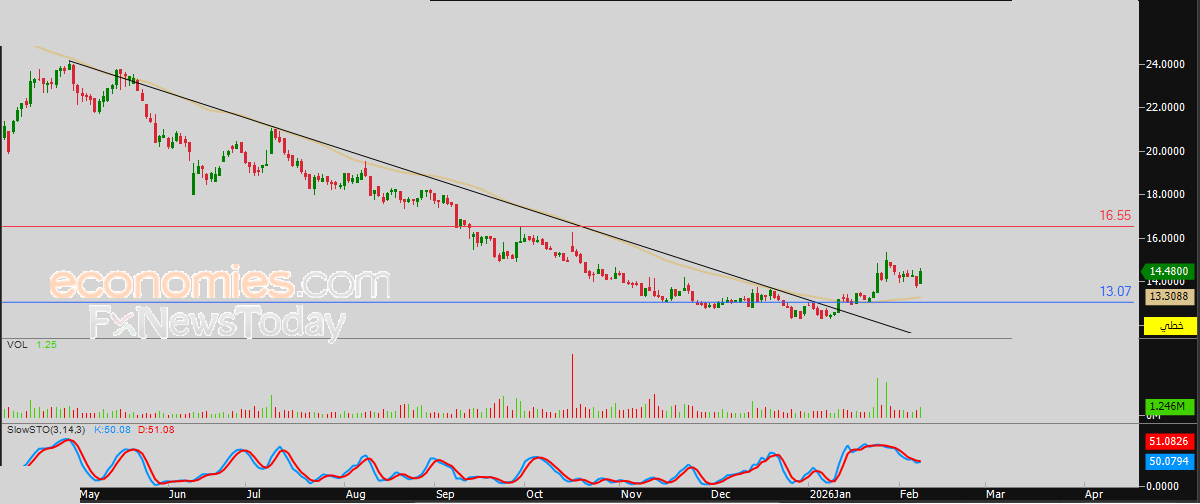 لهذا تشير توقعاتنا إلى صعود سعر السهم خلال تداولاته القادمة، طيلة ثبات مستوى الدعم 13.07 ريال، ليستهدف أولى مستويات المقاومة عند سعر 16.50 ريال.