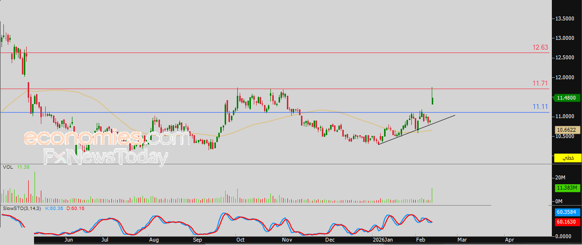 لذلك تشير توقعاتنا إلى صعود سعر السهم خلال تداولاته اللحظية القادمة، بشرط مهم وهو اختراقه أولاً للمقاومة المذكورة 11.70 ريال، ليكون هدف السهم التالي عند المقاومة 12.60 ريال.