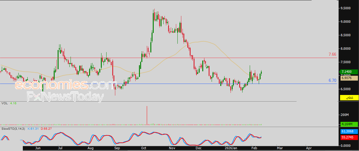 لهذا فتوقعاتنا تشير إلى صعود سعر السهم خلال تداولاته القادمة، طيلة ثبات مستوى الدعم 6.70 ريال، ليستهدف مستوى المقاومة المحوري 7.65 ريال.