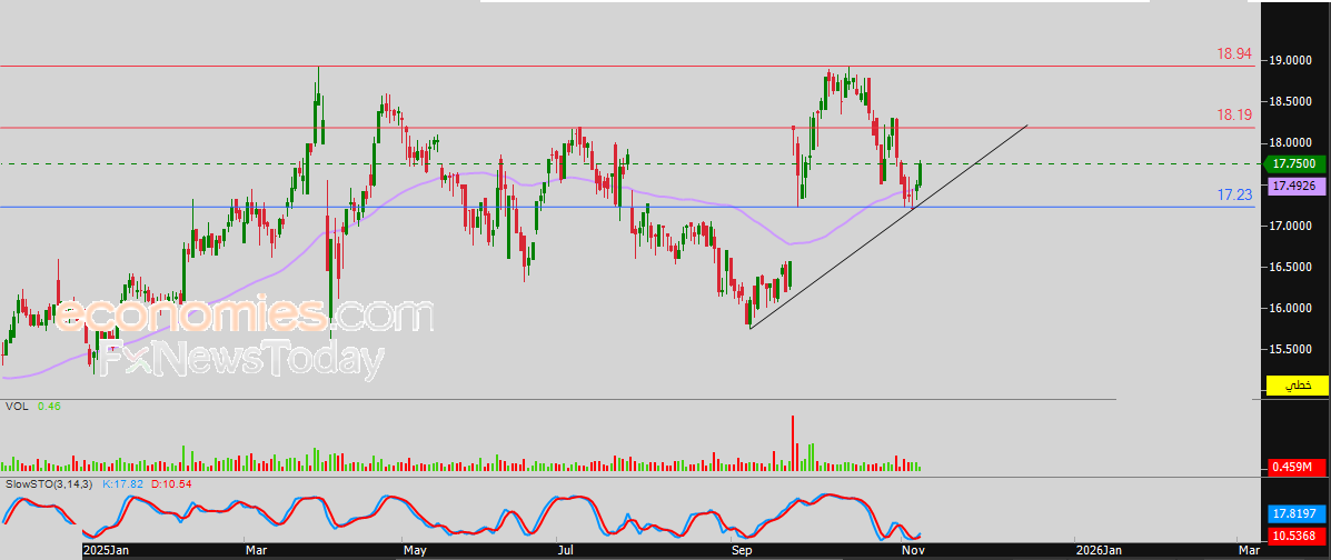 لذلك فتوقعاتنا تشير إلى صعود سعر السهم خلال تداولاته القادمة، طيلة ثبات مستوى الدعم 17.23 ريال، ليستهدف أولى مستويات المقاومة عند سعر 18.19 ريال.