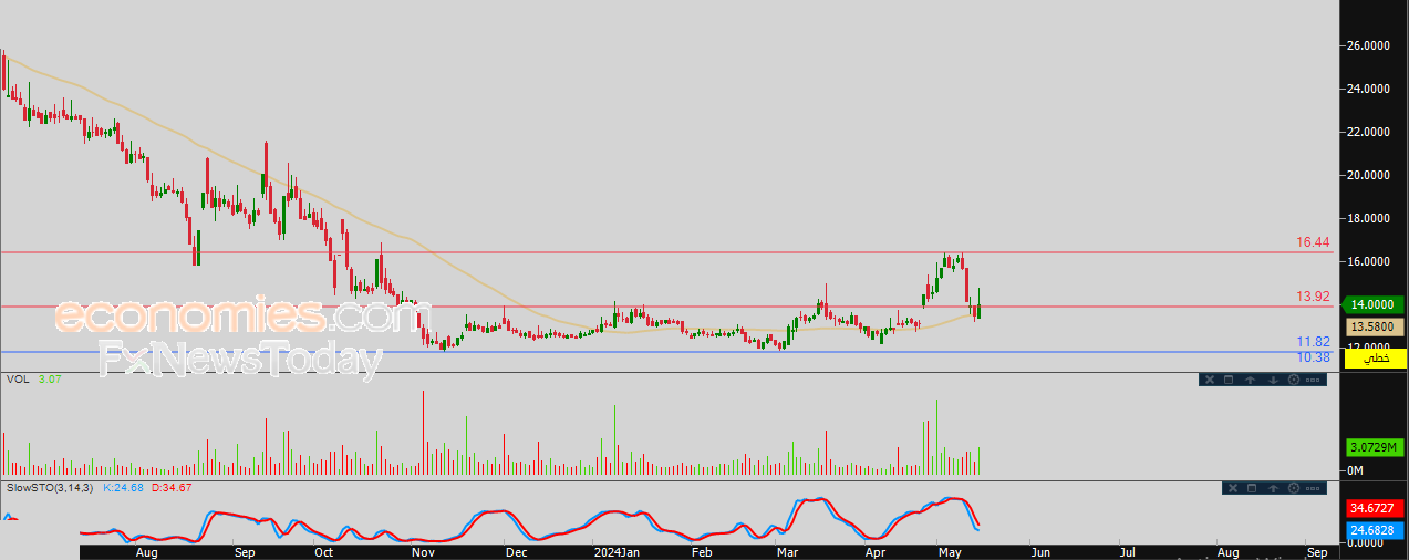 لذلك تشير توقعاتنا إلى المزيد من الصعود لسعر السهم خلال تداولاته القادمة، خاصة في حالة عودة استقراره فوق مستوى 13.92، ليستهدف بعدها مستوى المقاومة المحوري 16.44 استعداداً لمهاجمته.