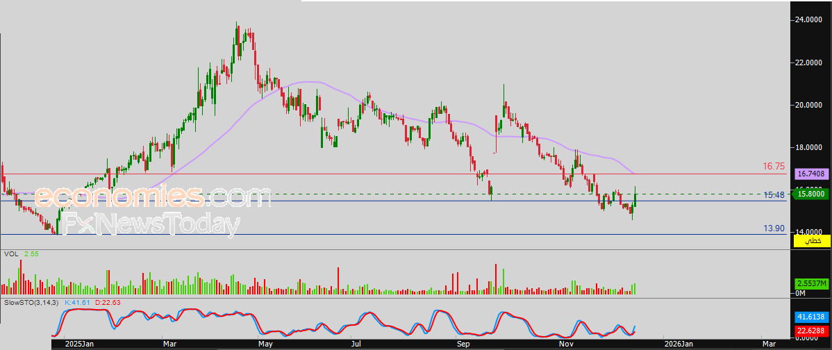 لذلك فتوقعاتنا تميل نحو هبوط سعر السهم خلال تداولاته القادمة، خاصة في حالة عودة استقراره دون الدعم 15.48 ريال، ليستهدف بعدها مستوى الدعم المحوري 13.90 ريال، مع وجود فرص تمديد مكاسب السهم لإعادة اختبار مستوى المقاومة 16.75 ريال.