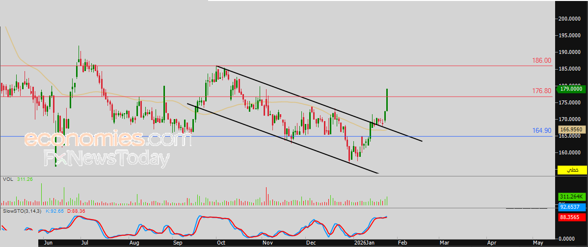 لذلك فتوقعاتنا تشير إلى ارتفاع سعر السهم خلال تداولاته القدامة، خاصة طيلة استقراره اعلى سعر 176.80 ريال، ليستهدف مستوى المقاومة المحوري 186.00 ريال.