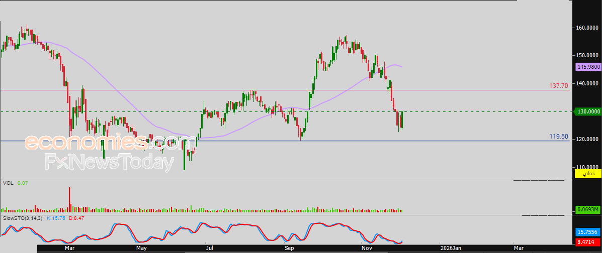 لهذا تشير توقعاتنا إلى انخفاض سعر السهم خلال تداولاته القادمة، طيلة ثبات مستوى المقاومة 137.70 ريال، ليستهدف مستوى الدعم المهم 119.50 ريال.