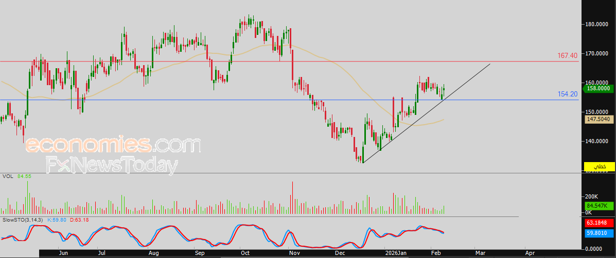 لذلك تشير توقعاتنا إلى صعود سعر السهم خلال تداولاته القادمة، خاصة طيلة استقراره اعلى الدعم 154.20 ريال، ليستهدف مستوى المقاومة 167.40 ريال.