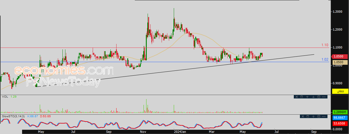 لهذا تشير توقعاتنا إلى ترجيح سيناريو عودة ارتفاع سعر السهم خلال تداولاته القادمة، طيلة ثبات الدعم 1.00، ليستهدف مستوى المقاومة المحوري 1.10 استعداداً لمهاجمته.