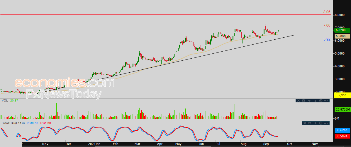 لهذا تشير توقعاتنا إلى المزيد من الصعود لسعر السهم خلال تداولاته القادمة، خاصة في حالة اختراقه لمستوى المقاومة 7.00، ليستهدف بعدها مستوى المقاومة 8.00.