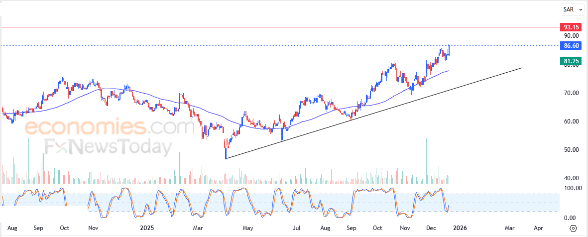لذلك فتوقعاتنا تشير إلى صعود سعر السهم خلال تداولاته القادمة، خاصة طيلة استقراره أعلى الدعم 81.25 ريال، ليستهدف مستوى المقاومة 93.00 ريال.