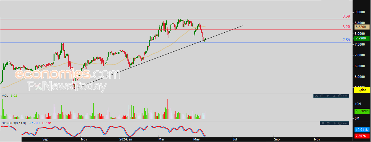 لذلك نحن نرجح المزيد من الارتفاع لسعر السهم خلال تداولاته القادمة، بشرط ثبات مستوى الدعم المحوري 7.59، ليستهدف مستوى المقاومة 8.20.