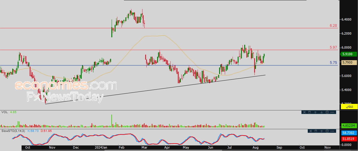 لهذا تشير توقعاتنا إلى المزيد من الصعود لسعر السهم خلال تداولاته القادمة، خاصة في حالة اختراقه لمستوى المقاومة 6.00، ليستهدف بعدها مستوى المقاومة 6.30.