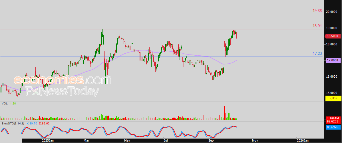 لهذا تشير توقعاتنا إلى صعود سعر السهم خلال تداولاته القادمة، بشرط اختراقه أولاً للمقاومة المذكورة 18.94 ريال، ليستهدف بعدها مقاومته التالية عند سعر 19.85 ريال.
