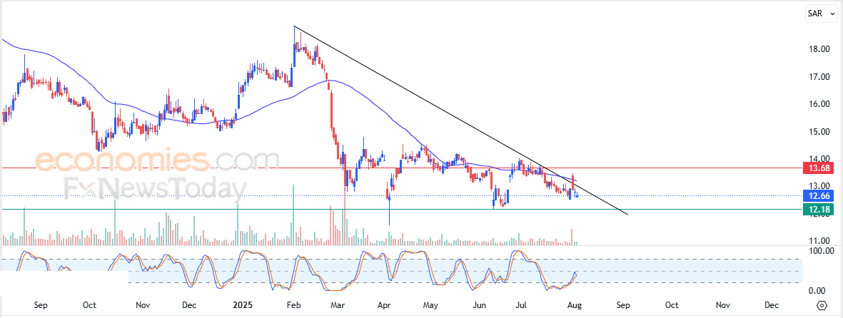 لذلك تشير توقعاتنا إلى انخفاض سعر السهم خلال تداولاته القادمة، طيلة ثبات المقاومة 13.68 ريال، ليستهدف مستوى الدعم المحوري 12.18 ريال.