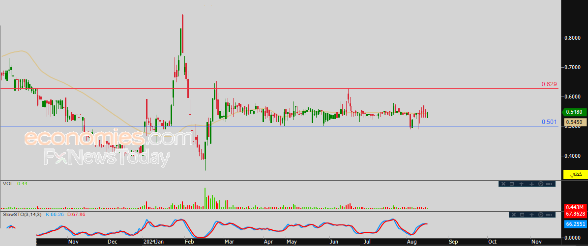 لهذا تشير توقعاتنا إلى المزيد من الارتفاع لسعر السهم خلال تداولاته القادمة، بشرط ثبات مستوى الدعم 0.500، ليستهدف مستوى المقاومة المحوري 0.630.